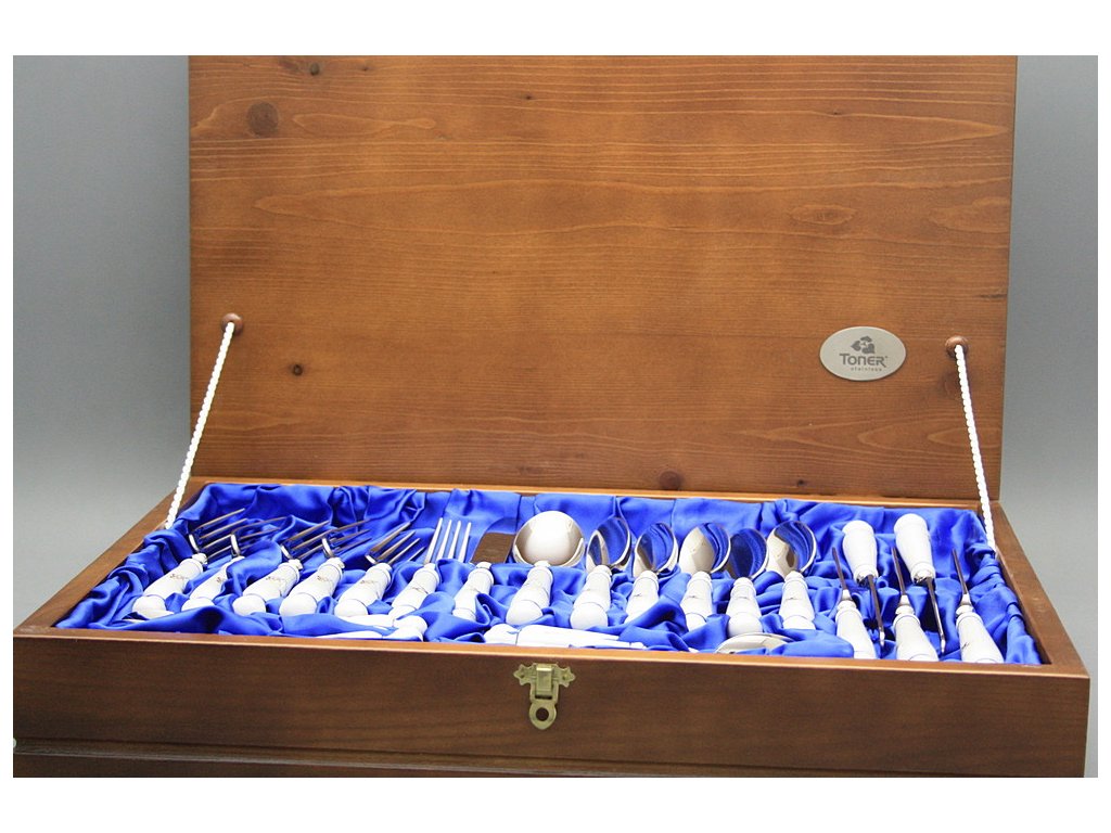 Luxuriöses 24teiliges Besteck Set mit Holzbox aus dem dickwandigen harten Porzellan.