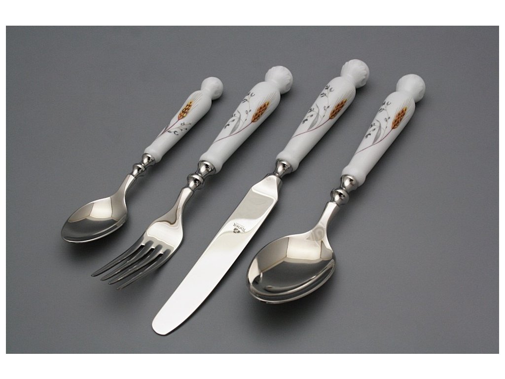 Luxuriöses 4teiliges Besteck Set aus dem dickwandigen harten Porzellan.