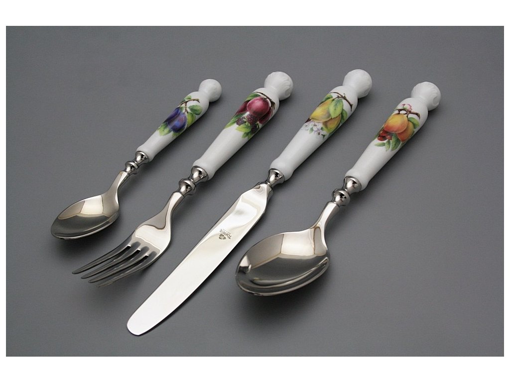 Luxuriöses 4teiliges Besteck Set aus dem dickwandigen harten Porzellan.