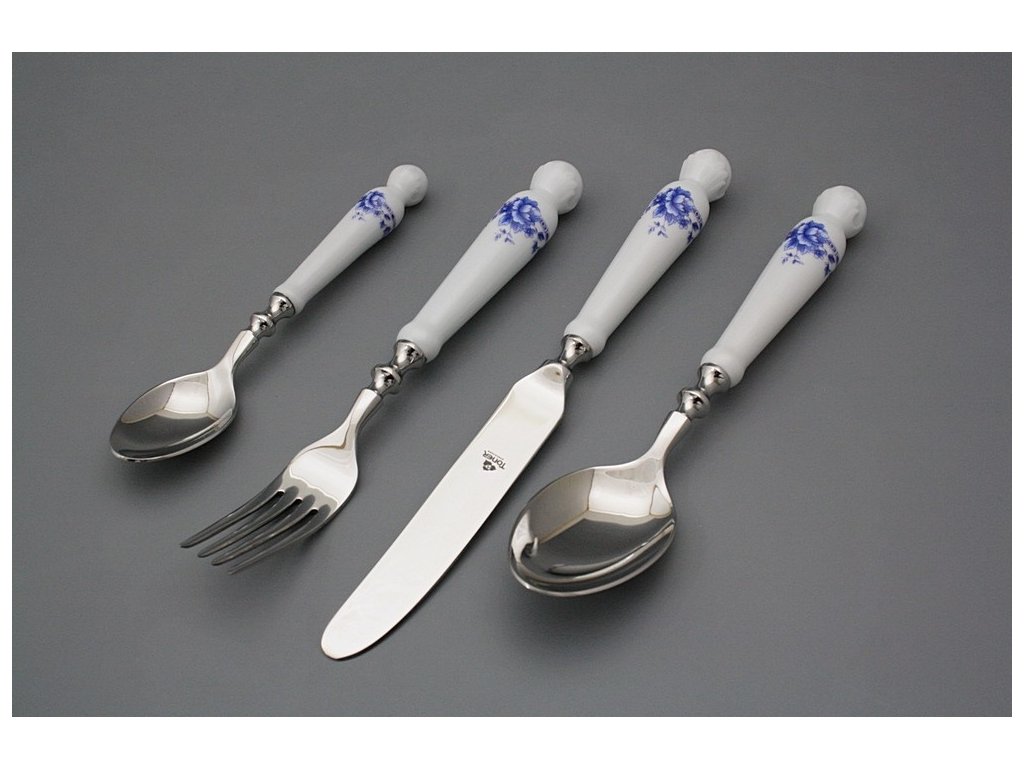 Luxuriöses 4teiliges Besteck Set aus dem dickwandigen harten Porzellan. Der Holzkasten ist nicht enthalten, im Falle von Interesse muss separat bestellt werden.