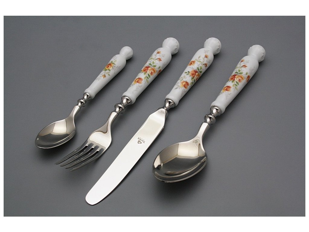 Luxuriöses 24teiliges Besteck Set aus dem dickwandigen harten Porzellan. Der Holzkasten ist nicht enthalten, im Falle von Interesse muss separat bestellt werden.