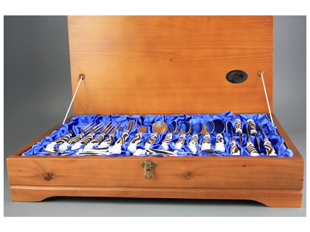 Luxuriöses 24teiliges Besteck Set mit Holzbox aus dem dickwandigen harten Porzellan.