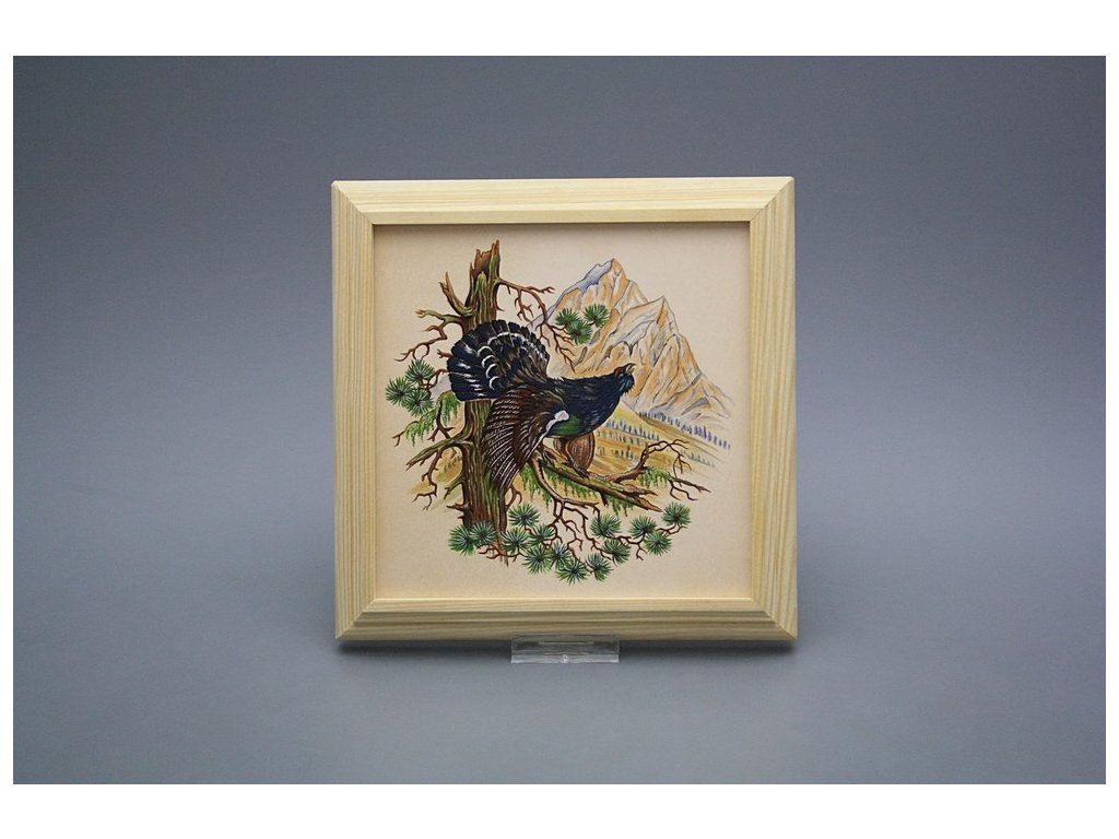 Keramisches Bild zum Aufhängen mit Holzrahmen, Temperatur beim Ausbrennen des Motivs in Höhe von 820°C, abriebfestes, waschbares Dekor.