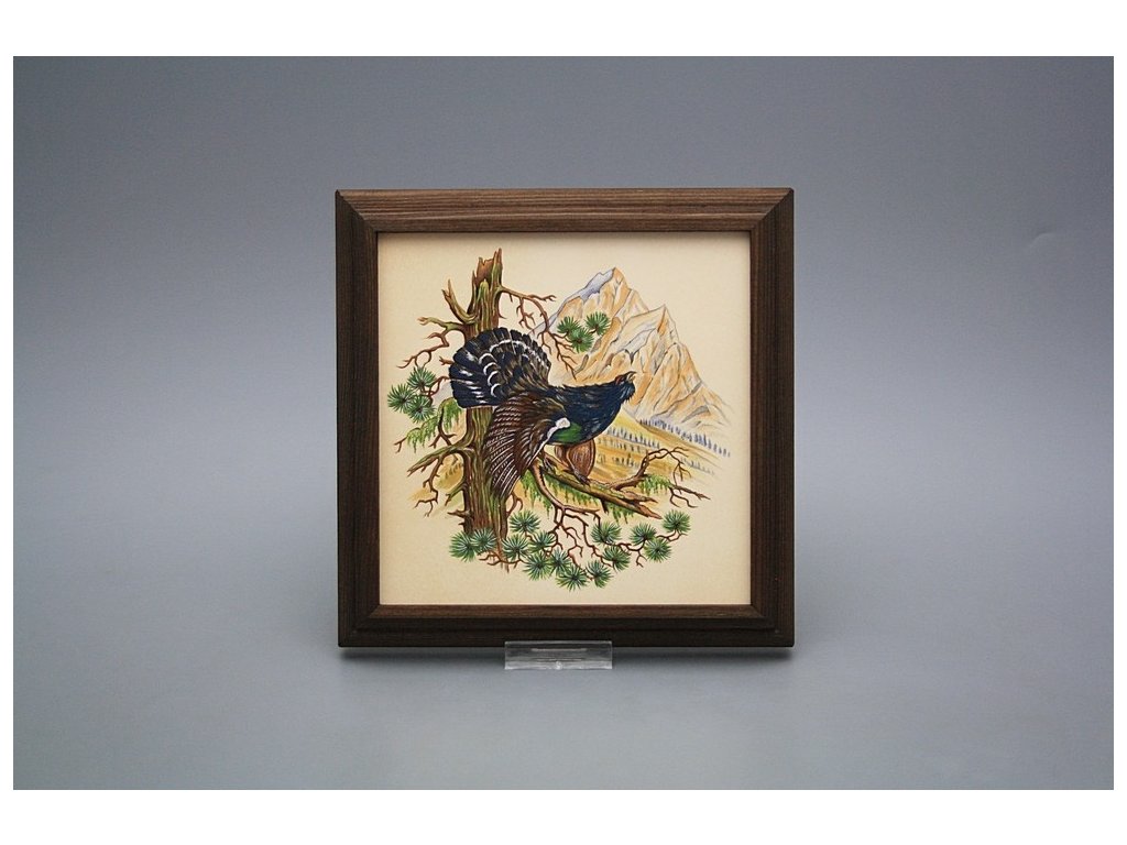 Keramisches Bild zum Aufhängen mit Holzrahmen, Temperatur beim Ausbrennen des Motivs in Höhe von 820°C, abriebfestes, waschbares Dekor.