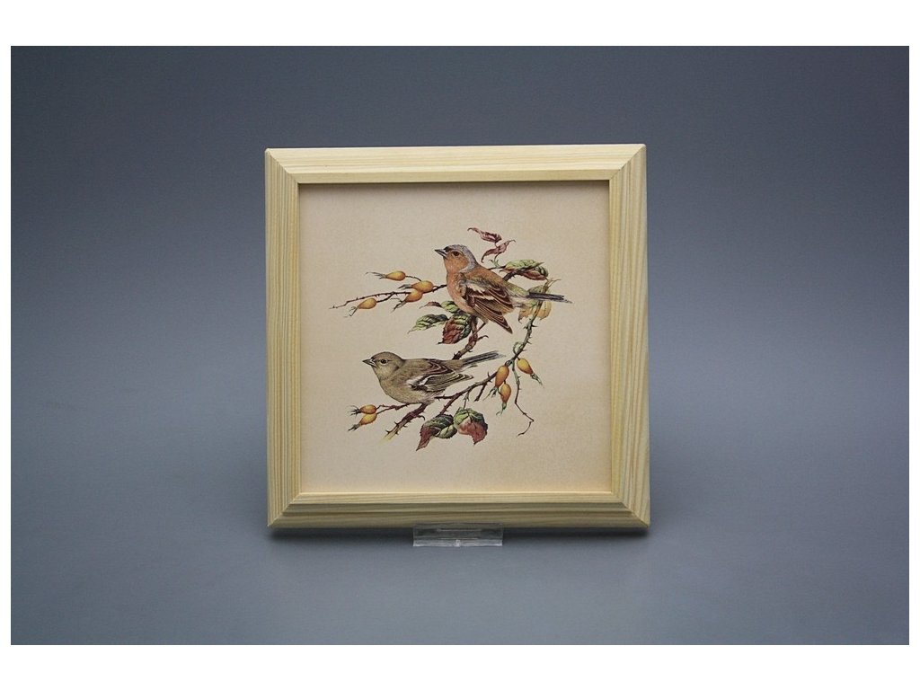 Keramisches Bild zum Aufhängen mit Holzrahmen, Temperatur beim Ausbrennen des Motivs in Höhe von 820°C, abriebfestes, waschbares Dekor.