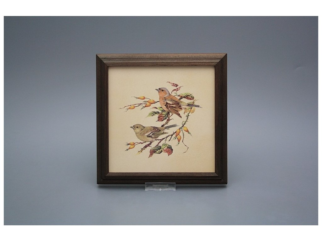 Keramisches Bild zum Aufhängen mit Holzrahmen, Temperatur beim Ausbrennen des Motivs in Höhe von 820°C, abriebfestes, waschbares Dekor.