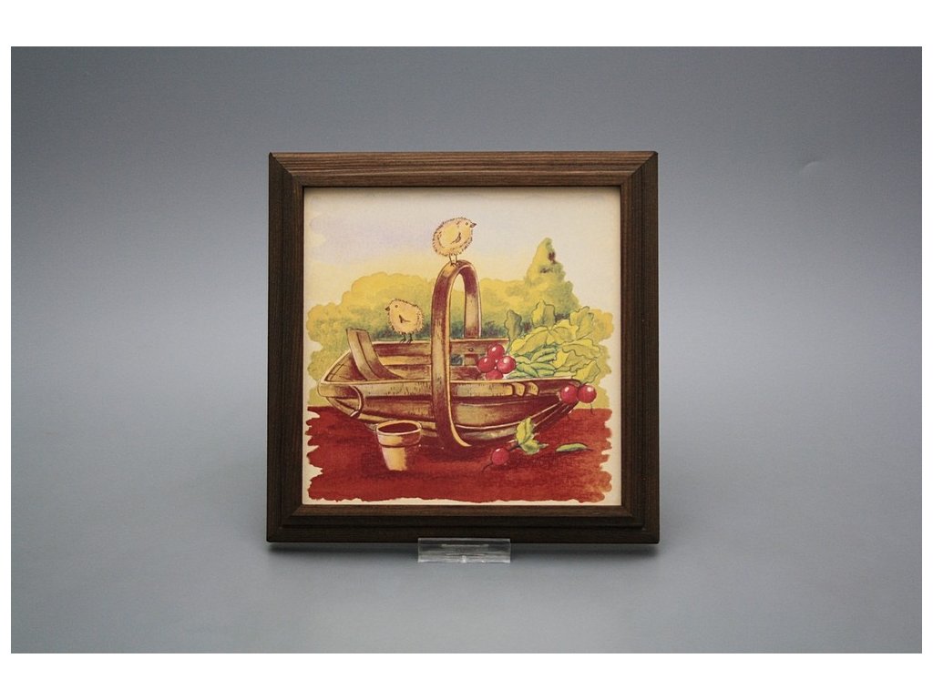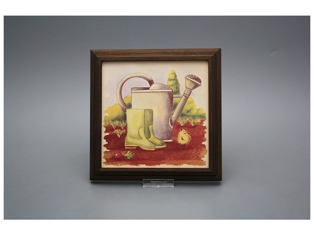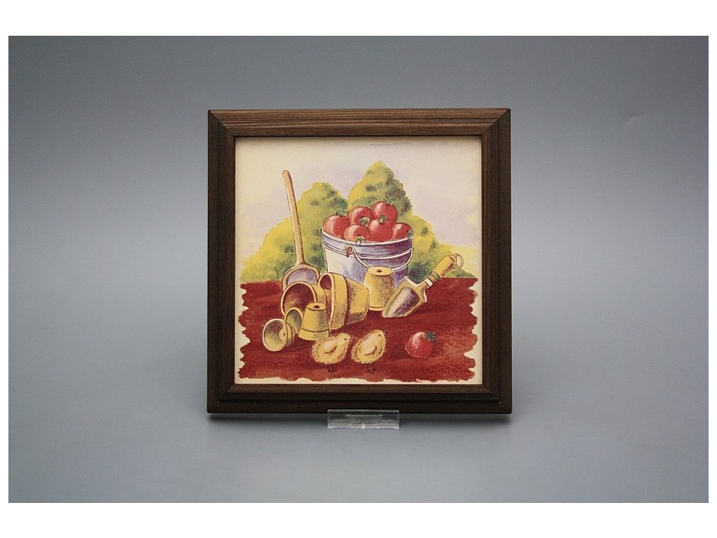 Keramisches Bild zum Aufhängen mit Holzrahmen, Temperatur beim Ausbrennen des Motivs in Höhe von 820°C, abriebfestes, waschbares Dekor.