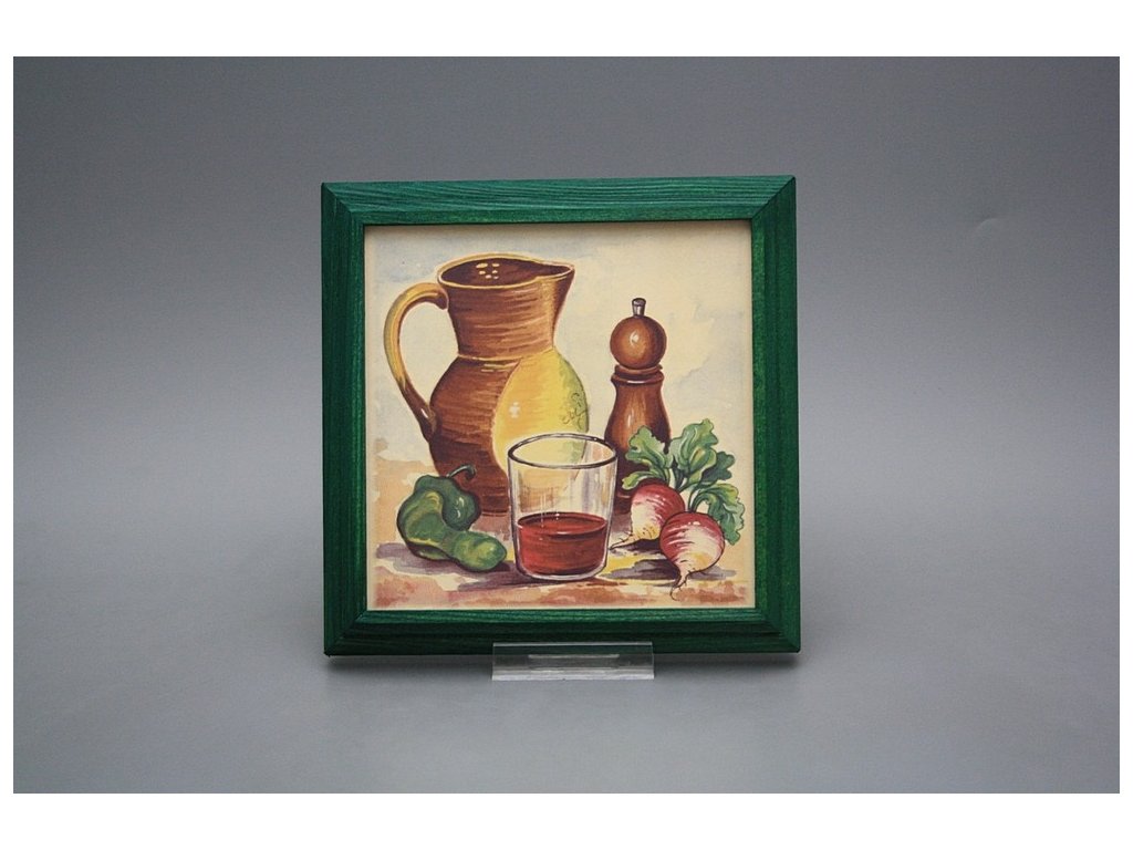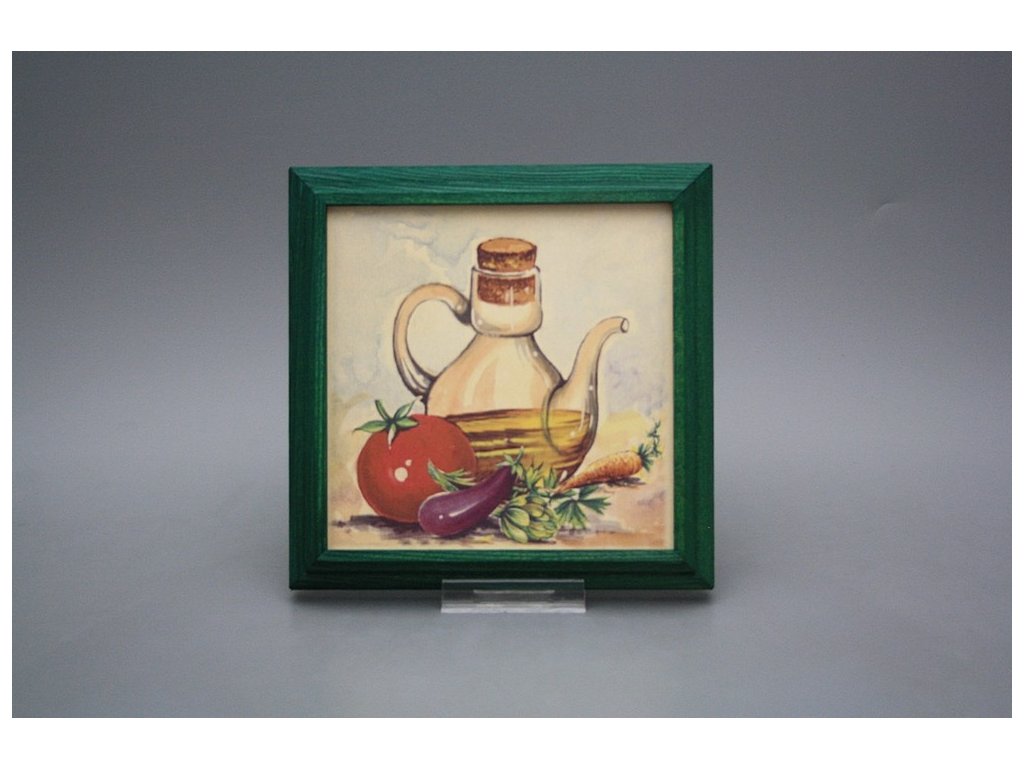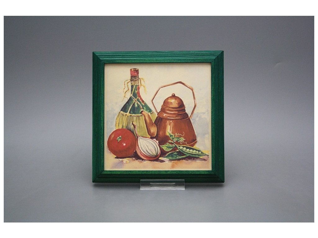 Keramisches Bild zum Aufhängen mit Holzrahmen, Temperatur beim Ausbrennen des Motivs in Höhe von 820°C, abriebfestes, waschbares Dekor.