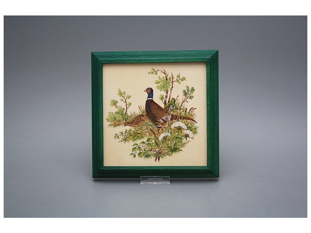 Keramisches Bild zum Aufhängen mit Holzrahmen, Temperatur beim Ausbrennen des Motivs in Höhe von 820°C, abriebfestes, waschbares Dekor.