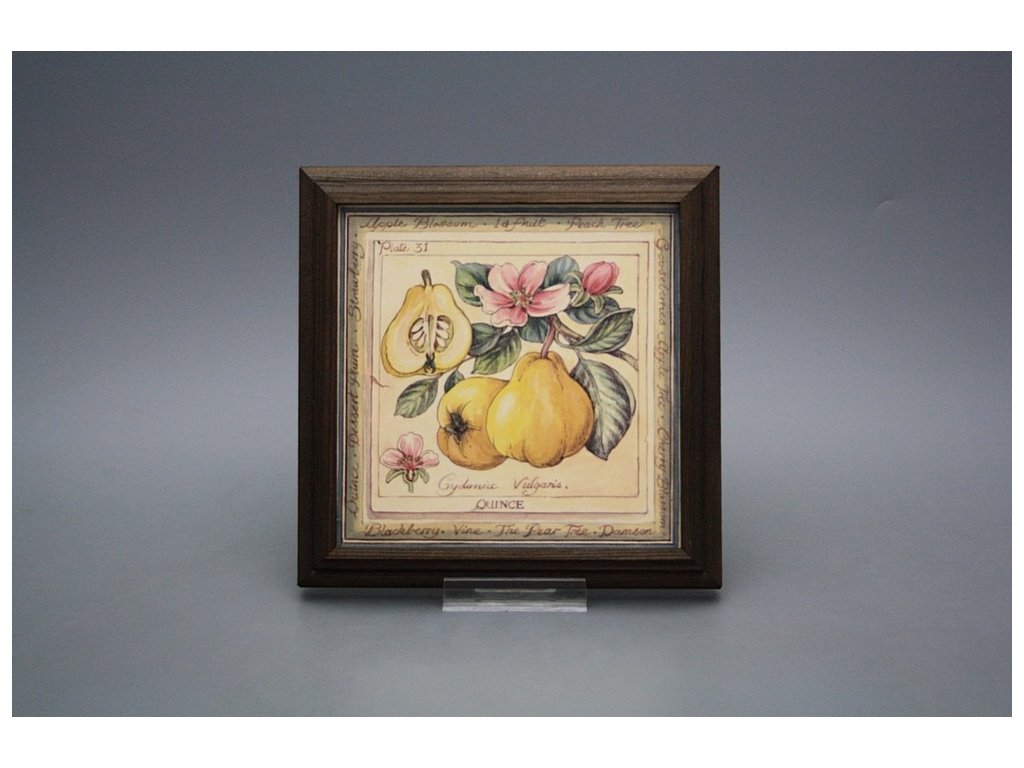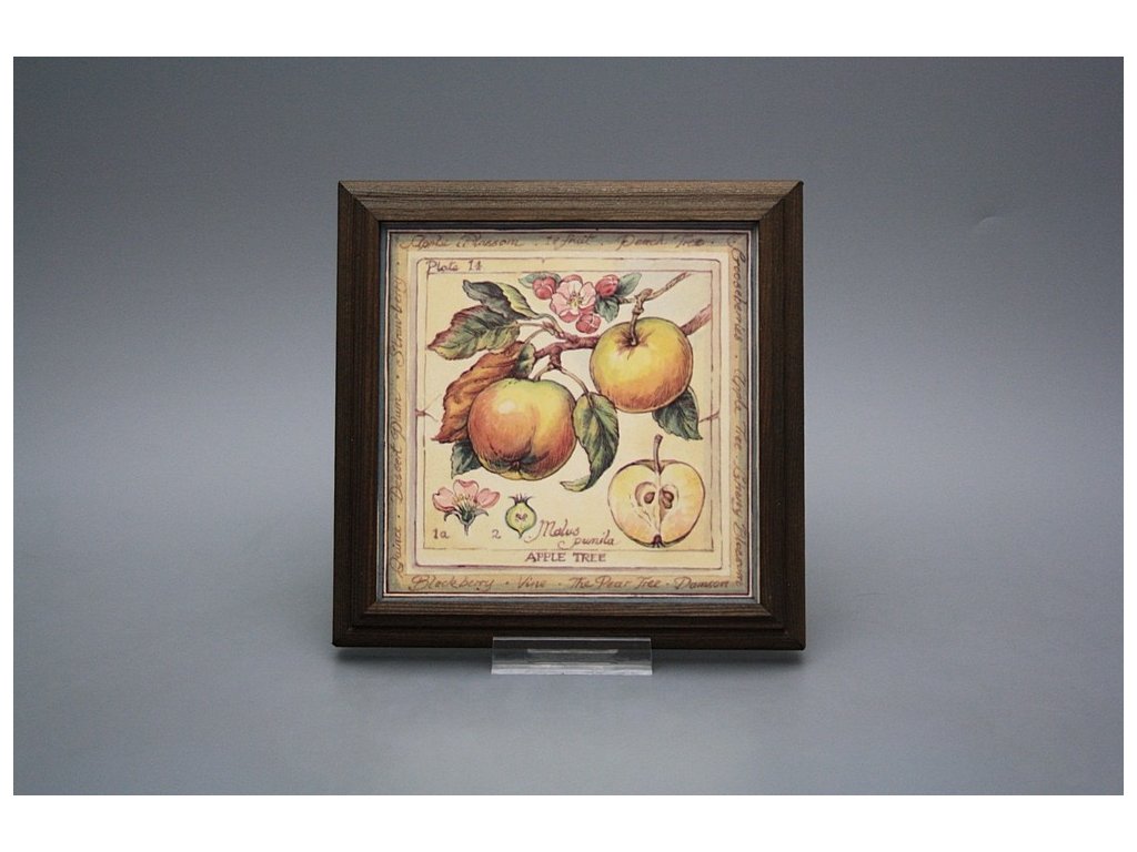 Keramisches Bild zum Aufhängen mit Holzrahmen, Temperatur beim Ausbrennen des Motivs in Höhe von 820°C, abriebfestes, waschbares Dekor.