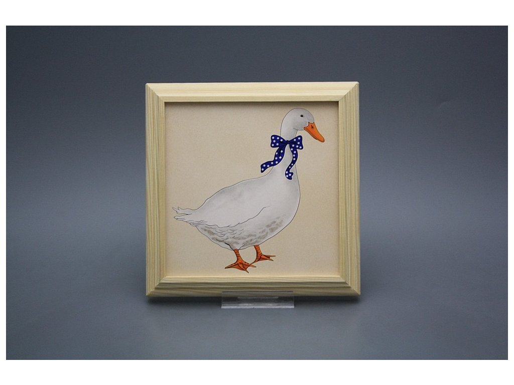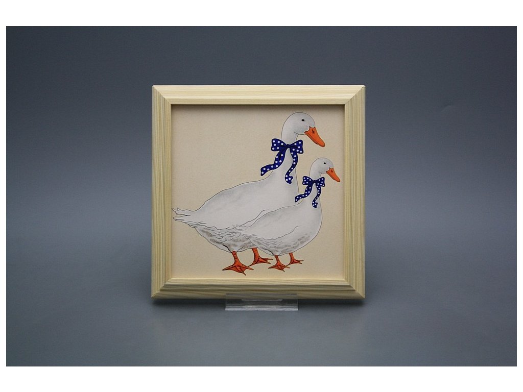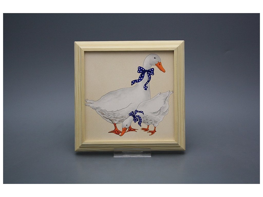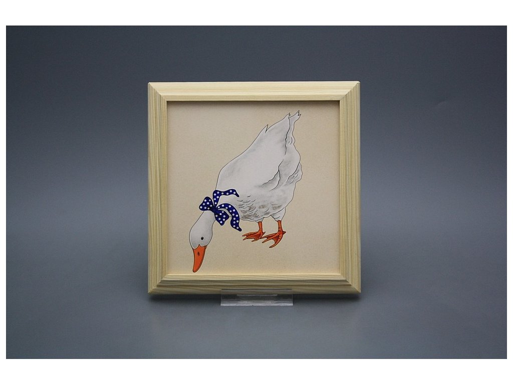 Keramisches Bild zum Aufhängen mit Holzrahmen, Temperatur beim Ausbrennen des Motivs in Höhe von 820°C, abriebfestes, waschbares Dekor.