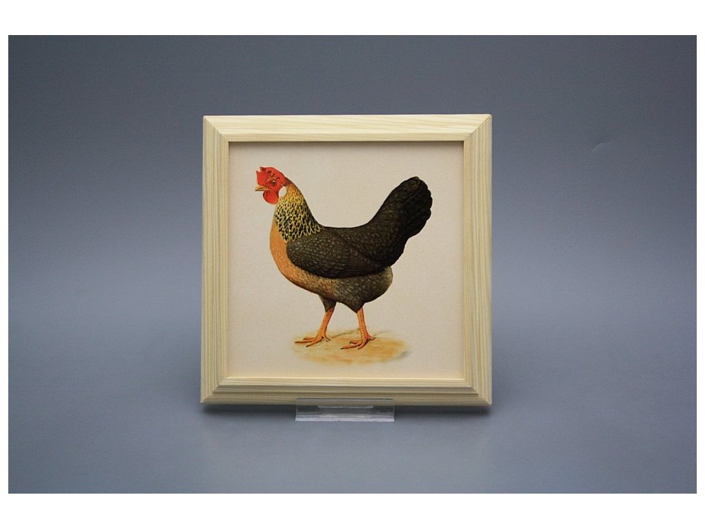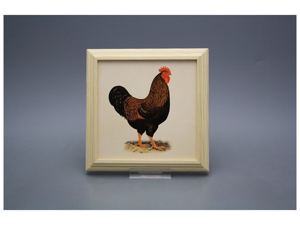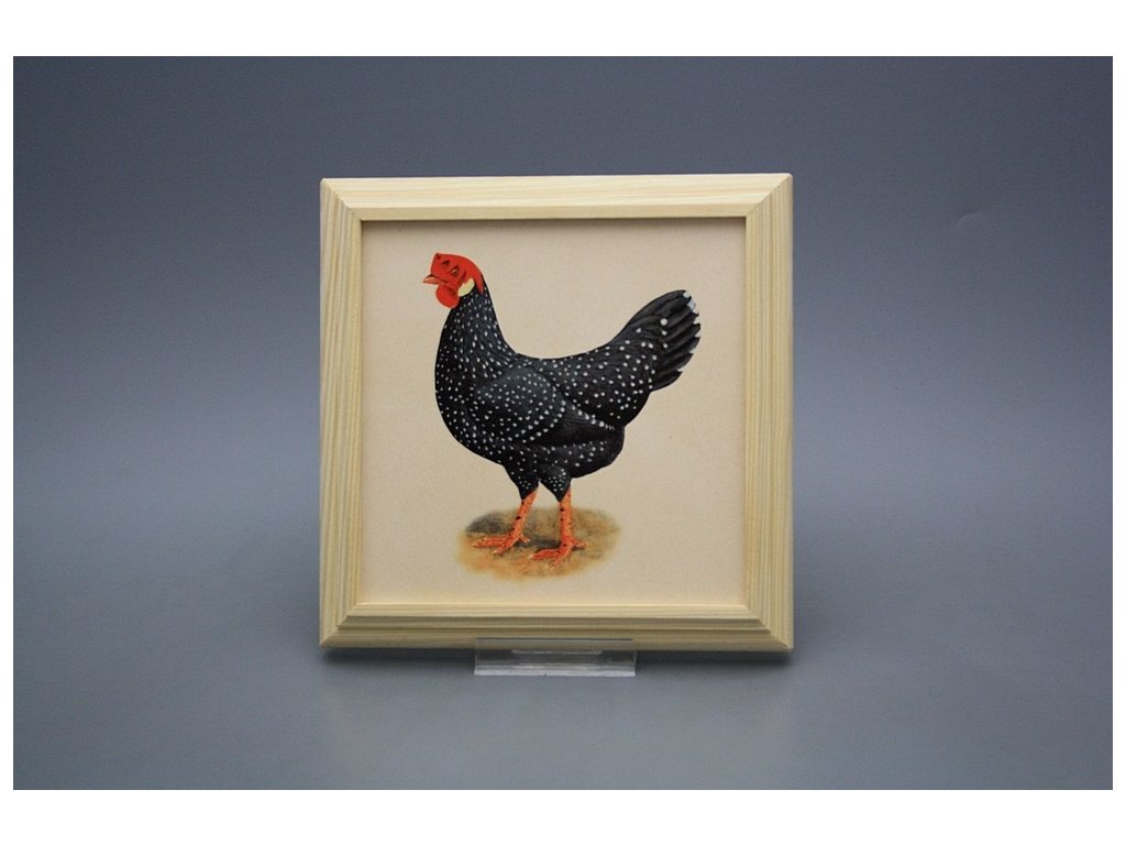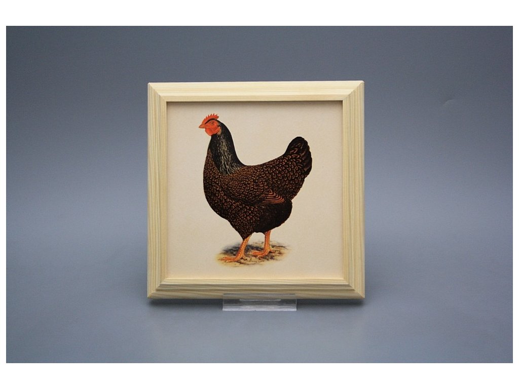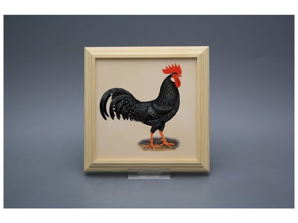 Keramisches Bild zum Aufhängen mit Holzrahmen, Temperatur beim Ausbrennen des Motivs in Höhe von 820°C, abriebfestes, waschbares Dekor.