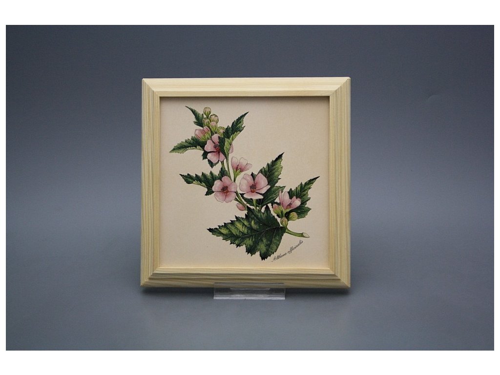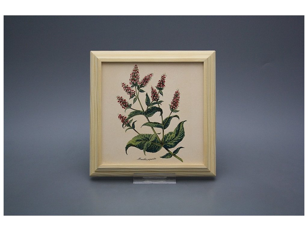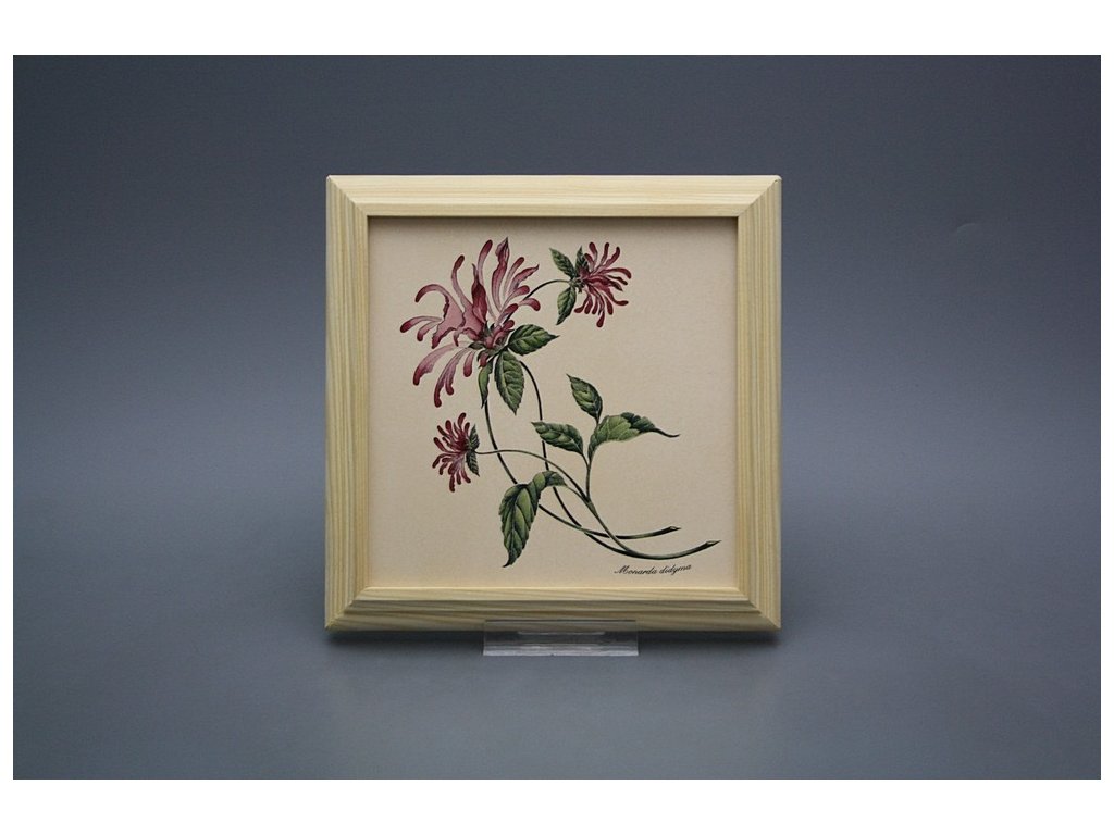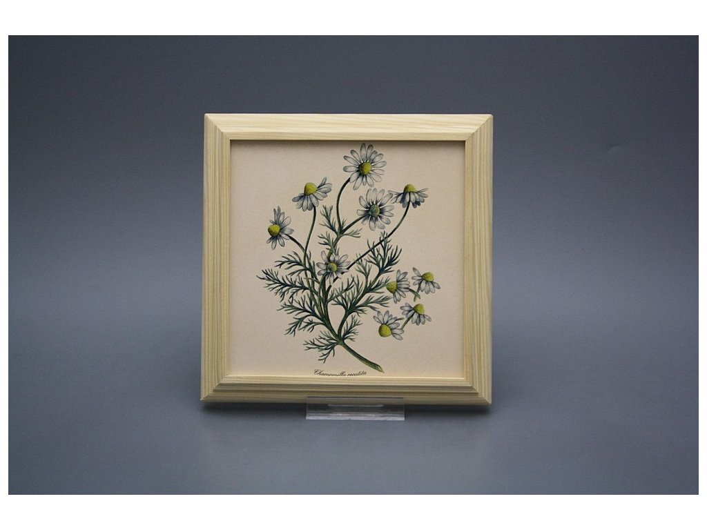 Keramisches Bild zum Aufhängen mit Holzrahmen, Temperatur beim Ausbrennen des Motivs in Höhe von 820°C, abriebfestes, waschbares Dekor.