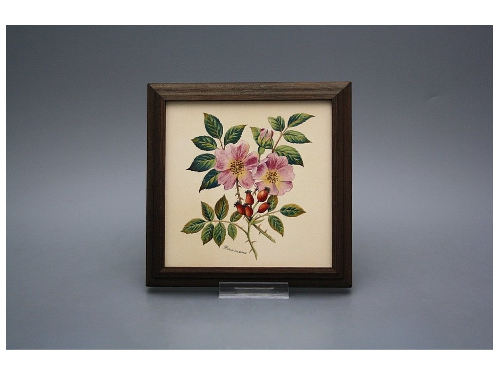 Keramisches Bild zum Aufhängen mit Holzrahmen, Temperatur beim Ausbrennen des Motivs in Höhe von 820°C, abriebfestes, waschbares Dekor.