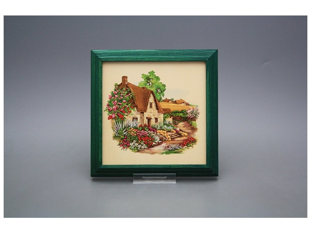 Keramisches Bild zum Aufhängen mit Holzrahmen, Temperatur beim Ausbrennen des Motivs in Höhe von 820°C, abriebfestes, waschbares Dekor.
