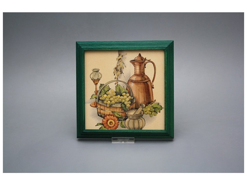 Keramisches Bild zum Aufhängen mit Holzrahmen, Temperatur beim Ausbrennen des Motivs in Höhe von 820°C, abriebfestes, waschbares Dekor.
