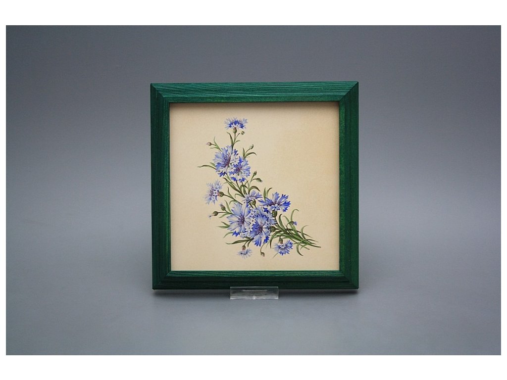 Keramisches Bild zum Aufhängen mit Holzrahmen, Temperatur beim Ausbrennen des Motivs in Höhe von 820°C, abriebfestes, waschbares Dekor.