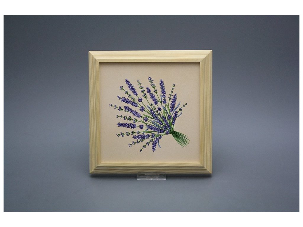 Keramisches Bild zum Aufhängen mit Holzrahmen, Temperatur beim Ausbrennen des Motivs in Höhe von 820°C, abriebfestes, waschbares Dekor.