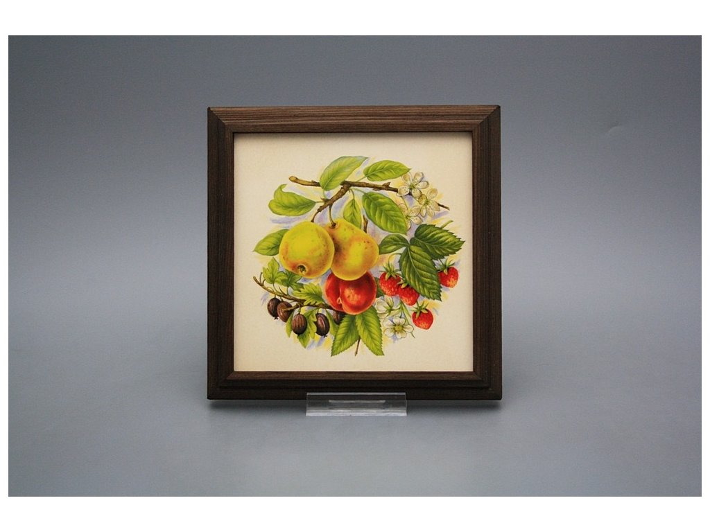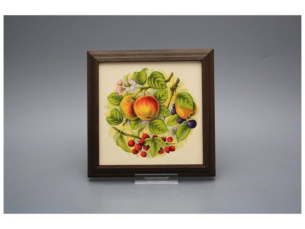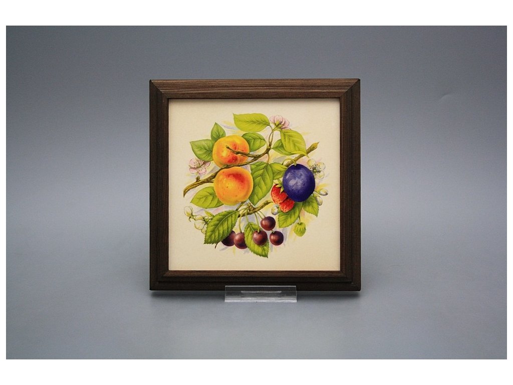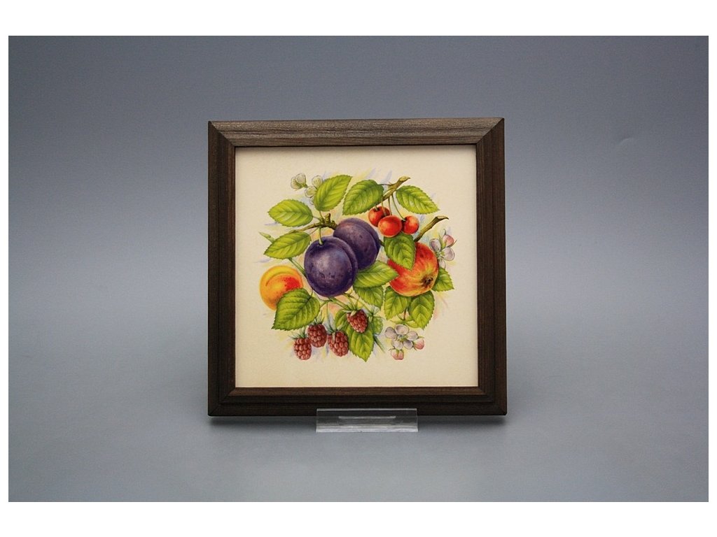 Keramisches Bild zum Aufhängen mit Holzrahmen, Temperatur beim Ausbrennen des Motivs in Höhe von 820°C, abriebfestes, waschbares Dekor.
