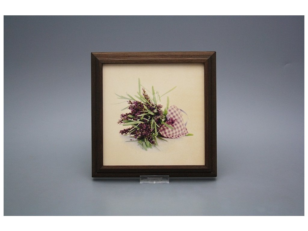 Keramisches Bild zum Aufhängen mit Holzrahmen, Temperatur beim Ausbrennen des Motivs in Höhe von 820°C, abriebfestes, waschbares Dekor.