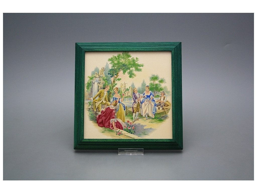 Keramisches Bild zum Aufhängen mit Holzrahmen, Temperatur beim Ausbrennen des Motivs in Höhe von 820°C, abriebfestes, waschbares Dekor.