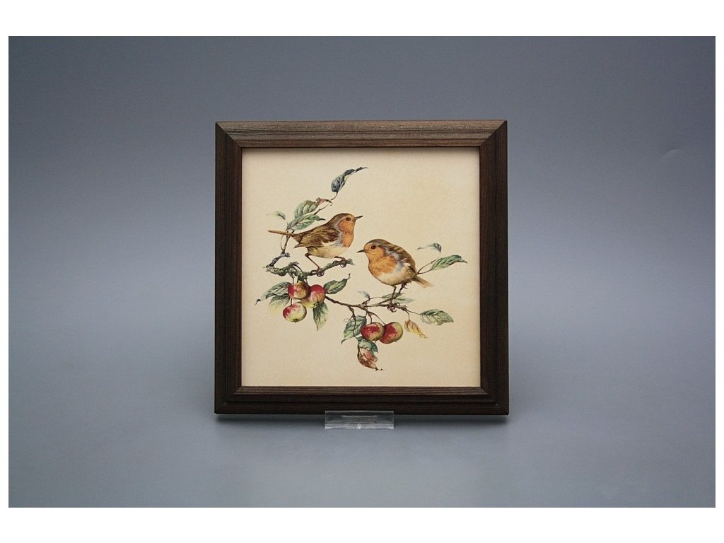 Keramisches Bild zum Aufhängen mit Holzrahmen, Temperatur beim Ausbrennen des Motivs in Höhe von 820°C, abriebfestes, waschbares Dekor.
