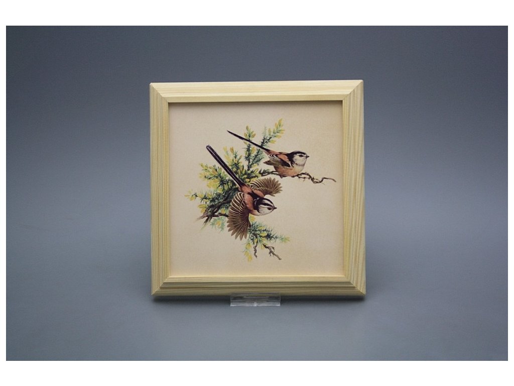 Keramisches Bild zum Aufhängen mit Holzrahmen, Temperatur beim Ausbrennen des Motivs in Höhe von 820°C, abriebfestes, waschbares Dekor.