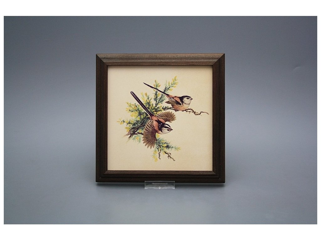 Keramisches Bild zum Aufhängen mit Holzrahmen, Temperatur beim Ausbrennen des Motivs in Höhe von 820°C, abriebfestes, waschbares Dekor.