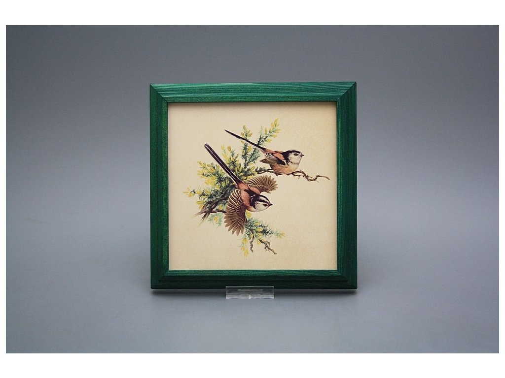 Keramisches Bild zum Aufhängen mit Holzrahmen, Temperatur beim Ausbrennen des Motivs in Höhe von 820°C, abriebfestes, waschbares Dekor.