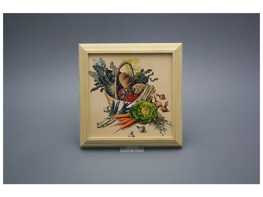 Keramisches Bild zum Aufhängen mit Holzrahmen, Temperatur beim Ausbrennen des Motivs in Höhe von 820°C, abriebfestes, waschbares Dekor.