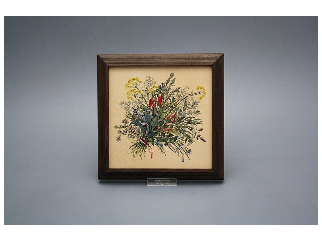 Keramisches Bild zum Aufhängen mit Holzrahmen, Temperatur beim Ausbrennen des Motivs in Höhe von 820°C, abriebfestes, waschbares Dekor.