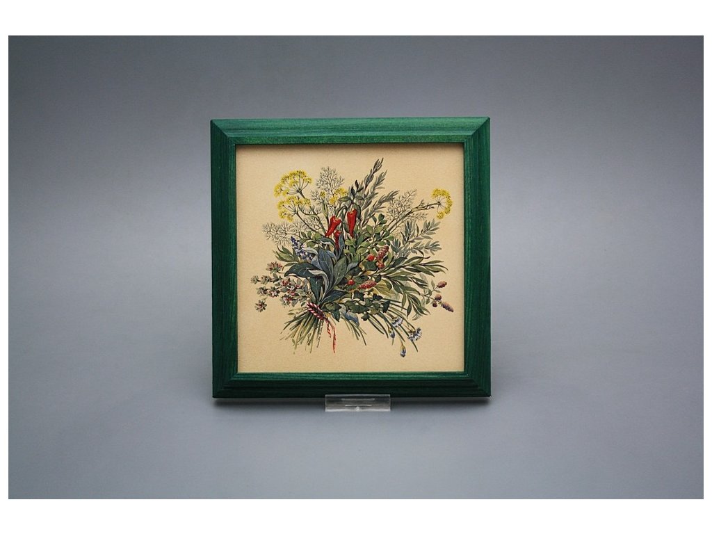 Keramisches Bild zum Aufhängen mit Holzrahmen, Temperatur beim Ausbrennen des Motivs in Höhe von 820°C, abriebfestes, waschbares Dekor.