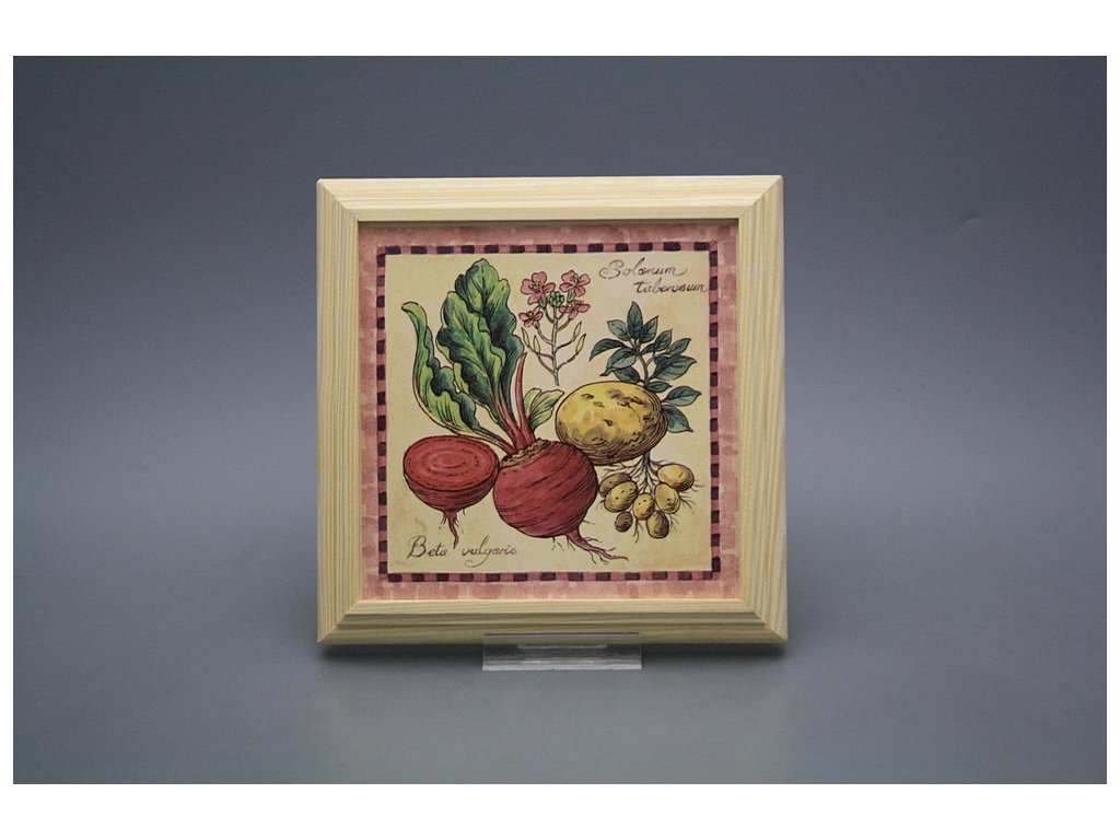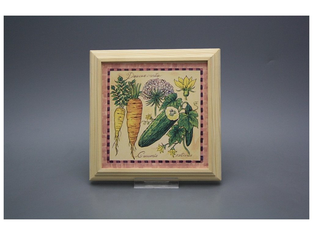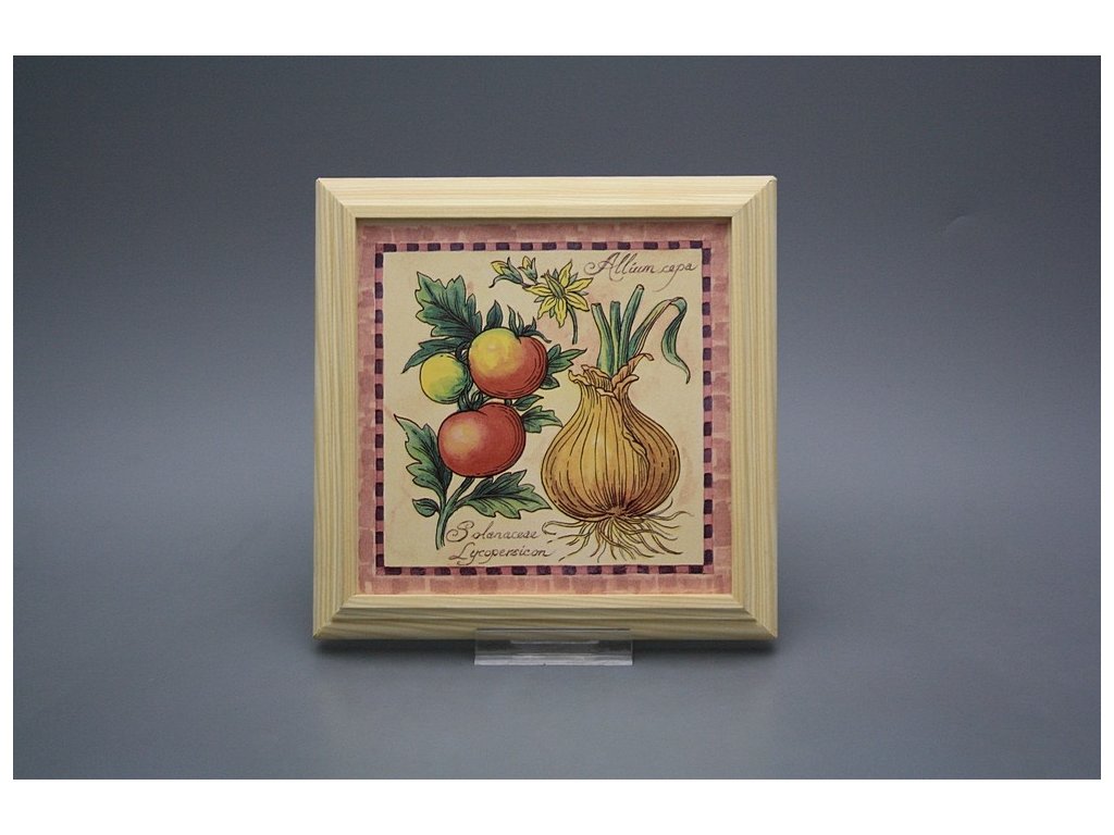 Keramisches Bild zum Aufhängen mit Holzrahmen, Temperatur beim Ausbrennen des Motivs in Höhe von 820°C, abriebfestes, waschbares Dekor.
