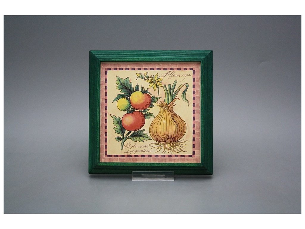 Keramisches Bild zum Aufhängen mit Holzrahmen, Temperatur beim Ausbrennen des Motivs in Höhe von 820°C, abriebfestes, waschbares Dekor.