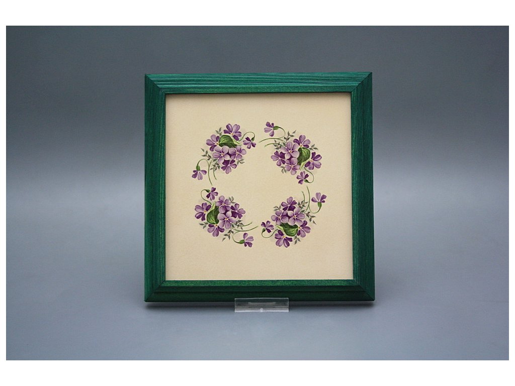 Keramisches Bild zum Aufhängen mit Holzrahmen, Temperatur beim Ausbrennen des Motivs in Höhe von 820°C, abriebfestes, waschbares Dekor.