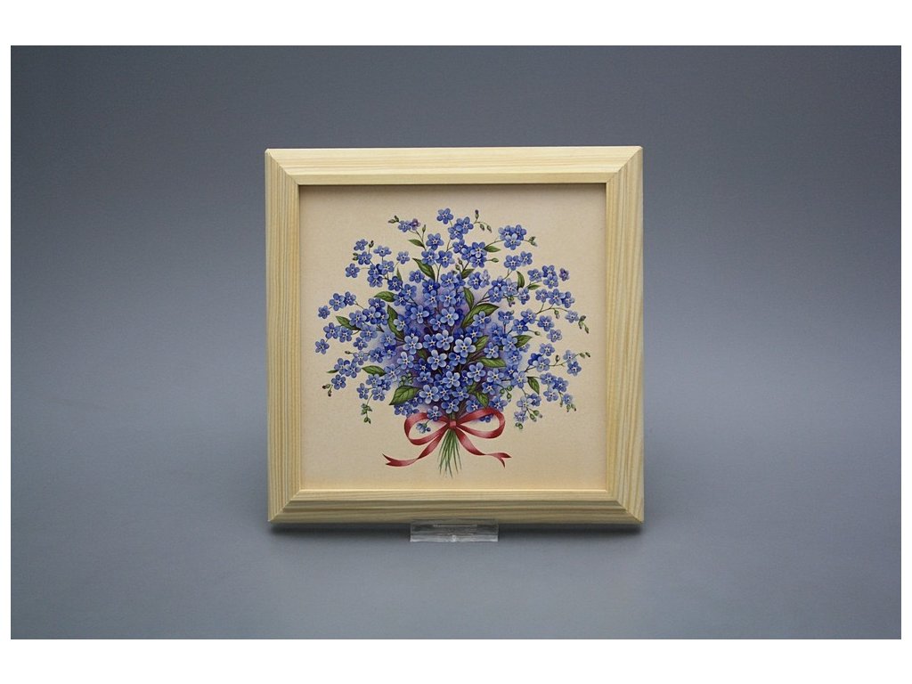 Keramisches Bild zum Aufhängen mit Holzrahmen, Temperatur beim Ausbrennen des Motivs in Höhe von 820°C, abriebfestes, waschbares Dekor.