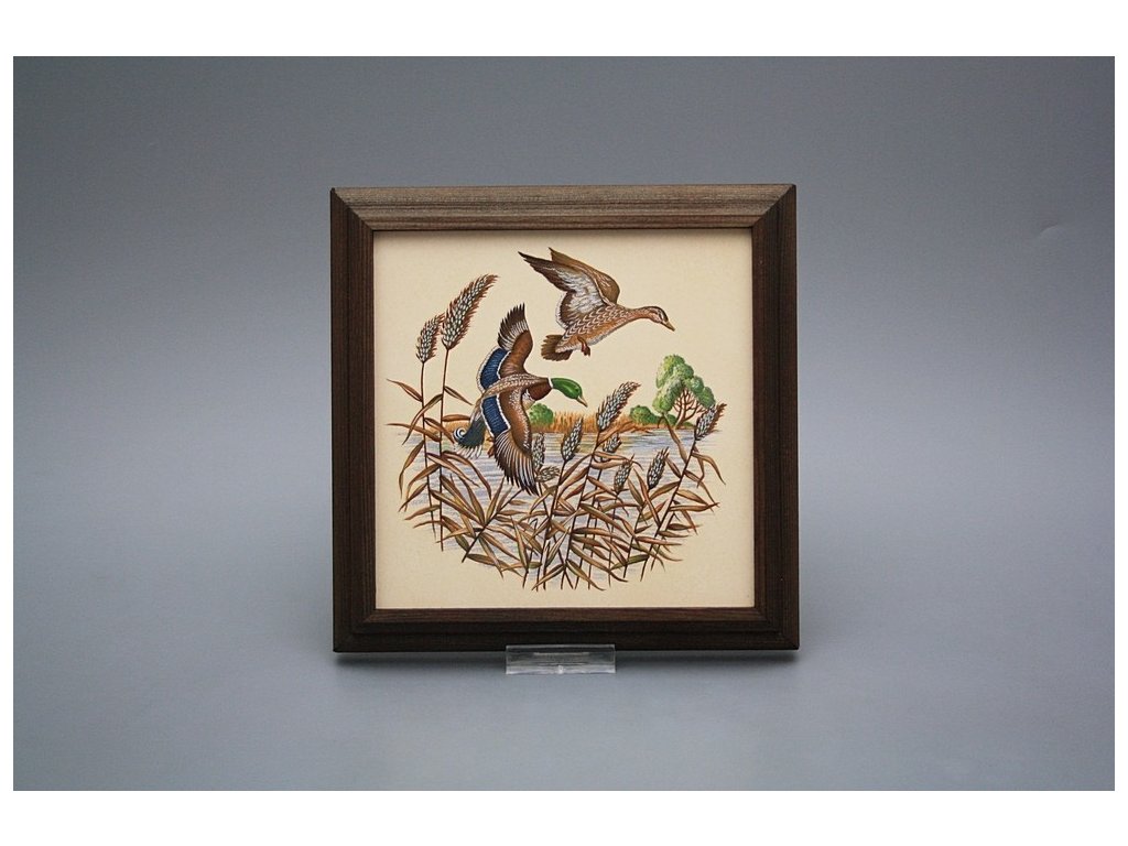 Keramisches Bild zum Aufhängen mit Holzrahmen, Temperatur beim Ausbrennen des Motivs in Höhe von 820°C, abriebfestes, waschbares Dekor.