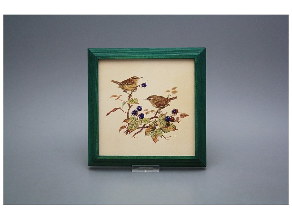 Keramisches Bild zum Aufhängen mit Holzrahmen, Temperatur beim Ausbrennen des Motivs in Höhe von 820°C, abriebfestes, waschbares Dekor.