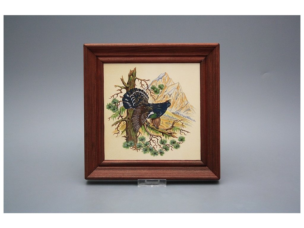 Keramisches Bild zum Aufhängen mit Holzrahmen, Temperatur beim Ausbrennen des Motivs in Höhe von 820°C, abriebfestes, waschbares Dekor.