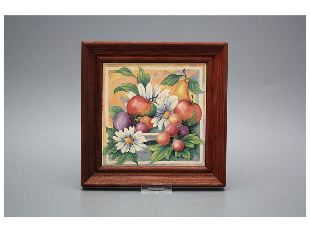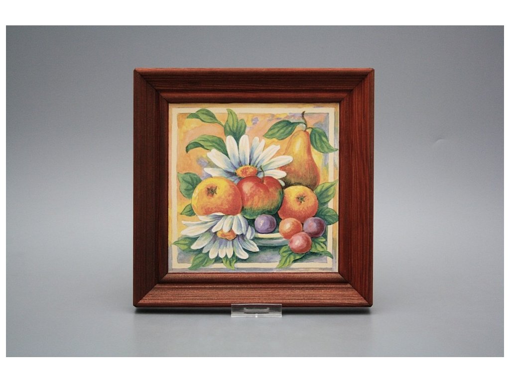 Keramisches Bild zum Aufhängen mit Holzrahmen, Temperatur beim Ausbrennen des Motivs in Höhe von 820°C, abriebfestes, waschbares Dekor.