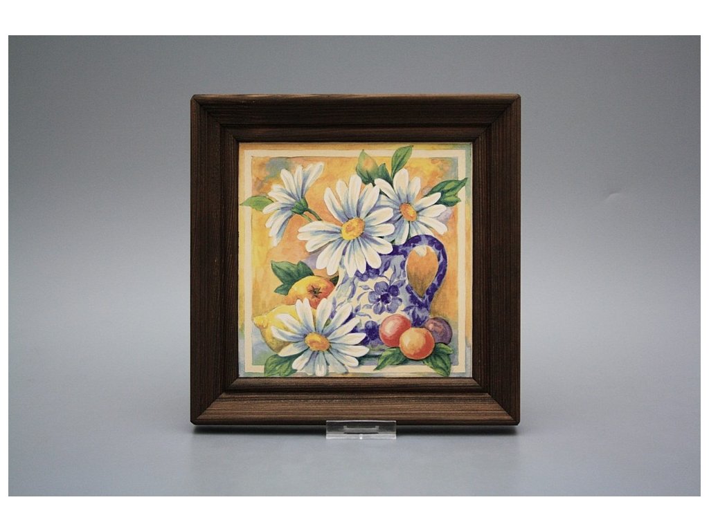 Keramisches Bild zum Aufhängen mit Holzrahmen, Temperatur beim Ausbrennen des Motivs in Höhe von 820°C, abriebfestes, waschbares Dekor.