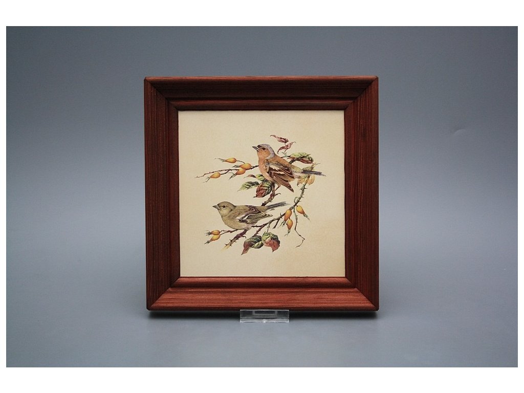 Keramisches Bild zum Aufhängen mit Holzrahmen, Temperatur beim Ausbrennen des Motivs in Höhe von 820°C, abriebfestes, waschbares Dekor.
