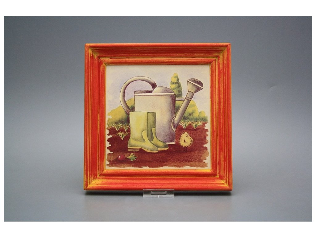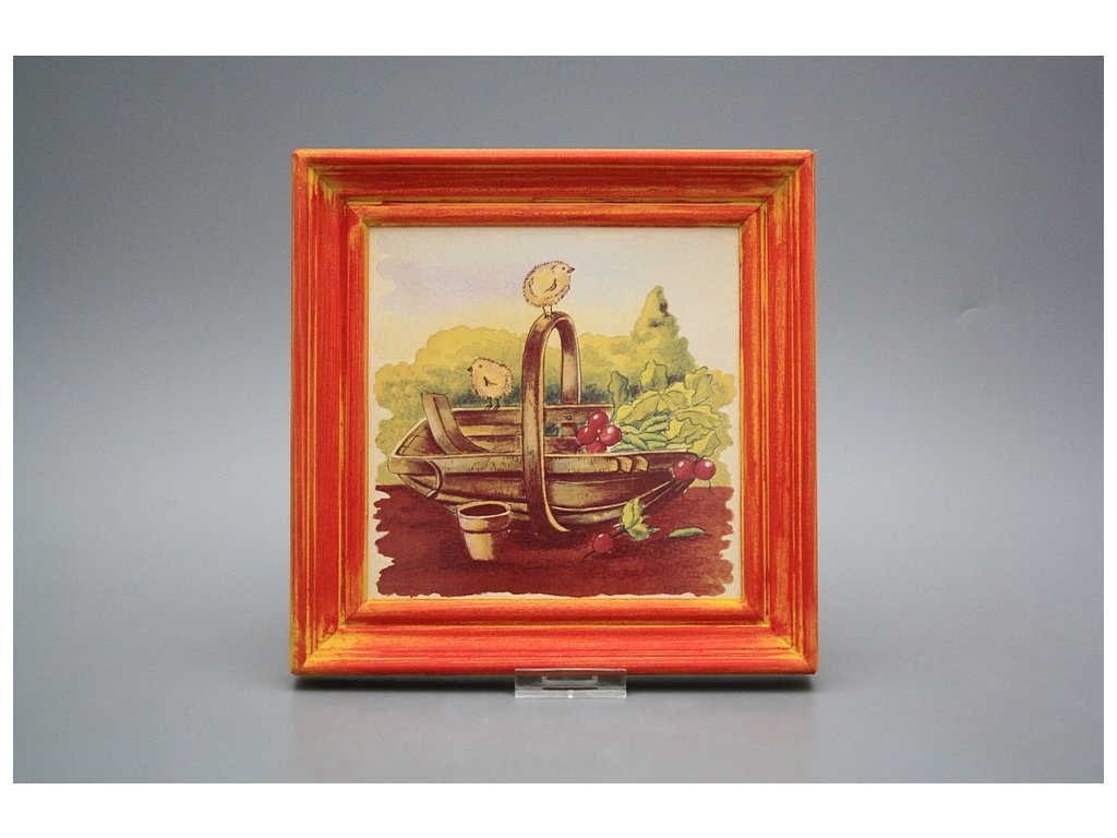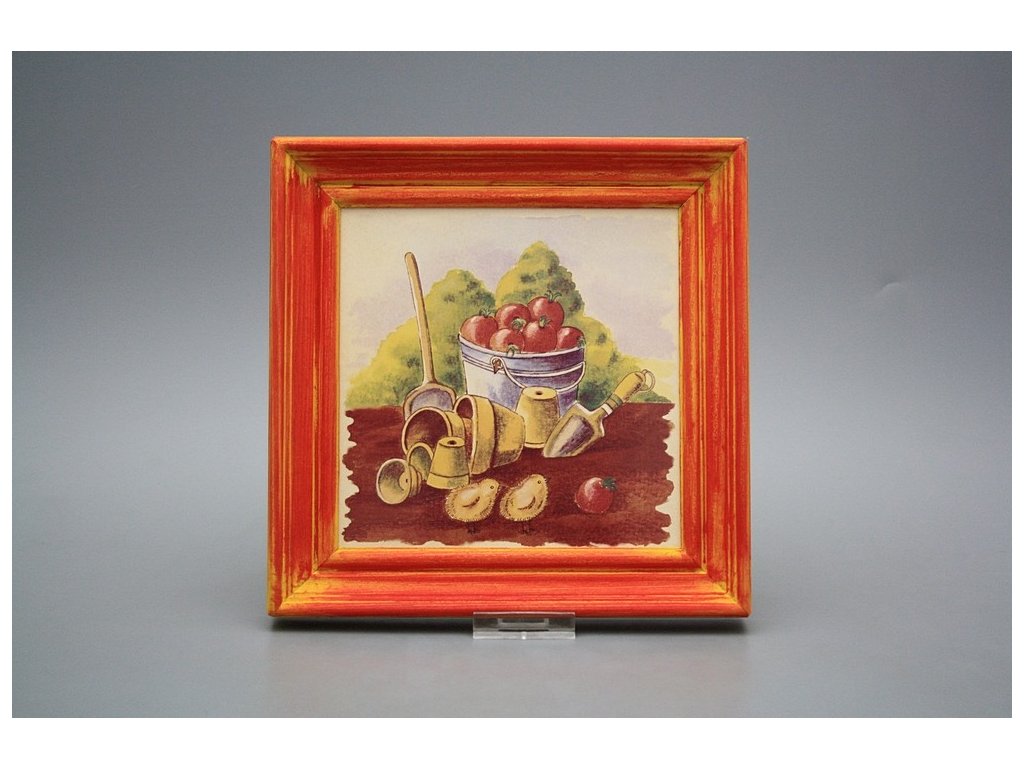 Keramisches Bild zum Aufhängen mit Holzrahmen, Temperatur beim Ausbrennen des Motivs in Höhe von 820°C, abriebfestes, waschbares Dekor.