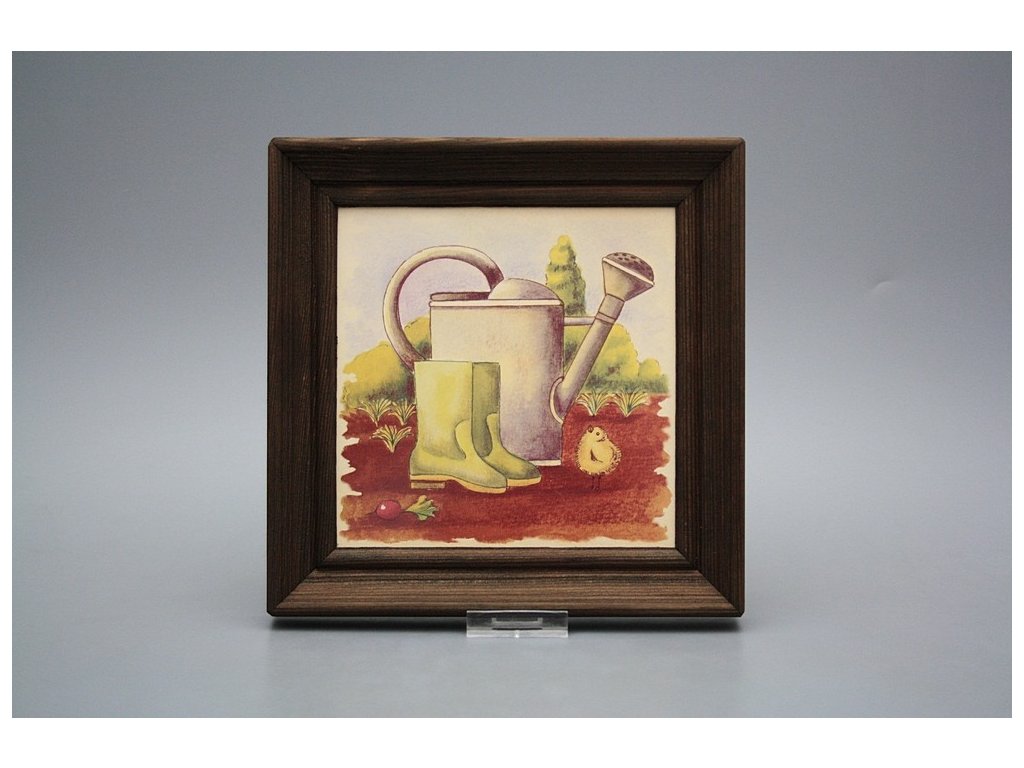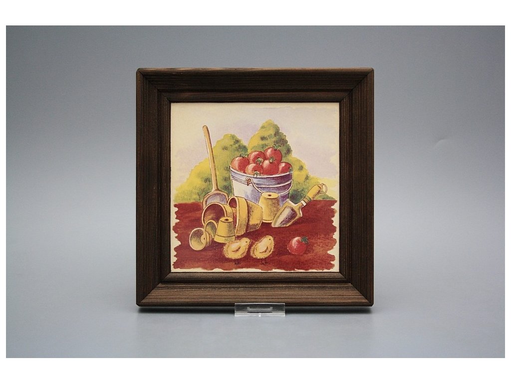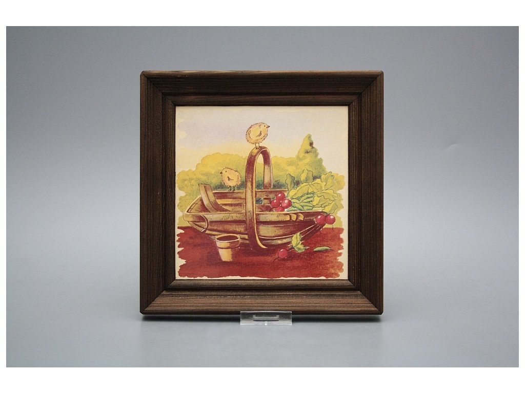 Keramisches Bild zum Aufhängen mit Holzrahmen, Temperatur beim Ausbrennen des Motivs in Höhe von 820°C, abriebfestes, waschbares Dekor.