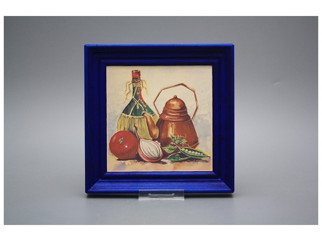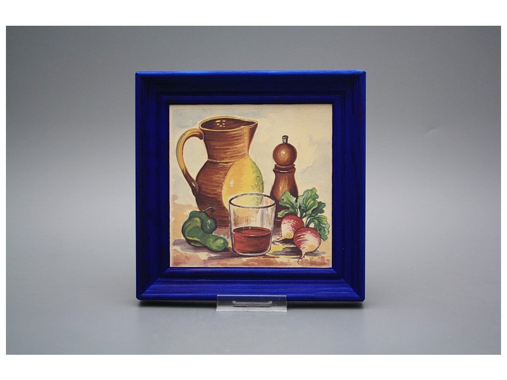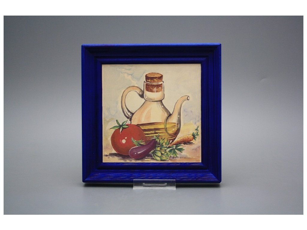 Keramisches Bild zum Aufhängen mit Holzrahmen, Temperatur beim Ausbrennen des Motivs in Höhe von 820°C, abriebfestes, waschbares Dekor.