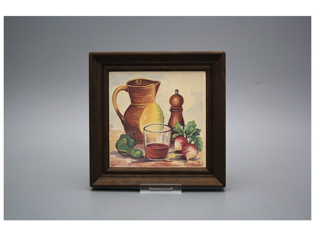 Keramisches Bild zum Aufhängen mit Holzrahmen, Temperatur beim Ausbrennen des Motivs in Höhe von 820°C, abriebfestes, waschbares Dekor.