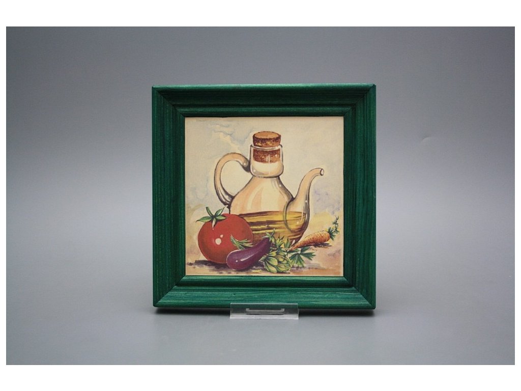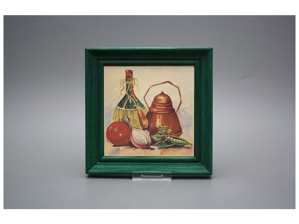 Keramisches Bild zum Aufhängen mit Holzrahmen, Temperatur beim Ausbrennen des Motivs in Höhe von 820°C, abriebfestes, waschbares Dekor.