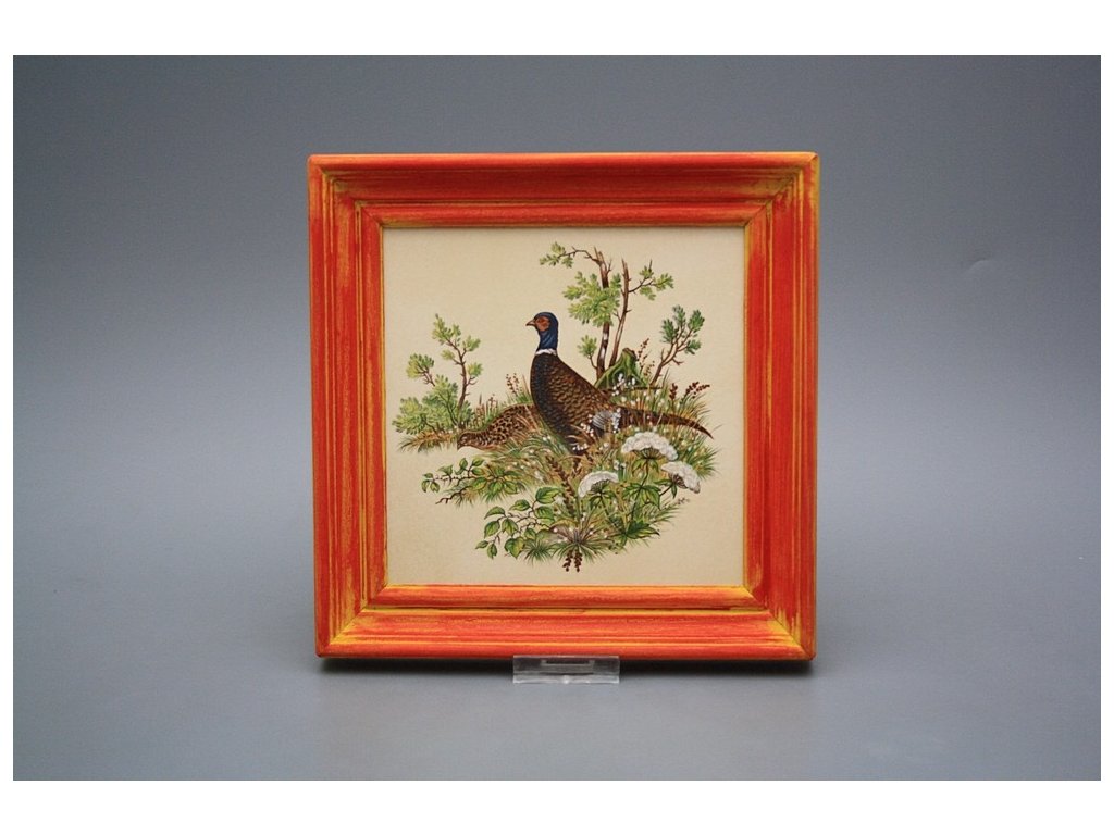 Keramisches Bild zum Aufhängen mit Holzrahmen, Temperatur beim Ausbrennen des Motivs in Höhe von 820°C, abriebfestes, waschbares Dekor.