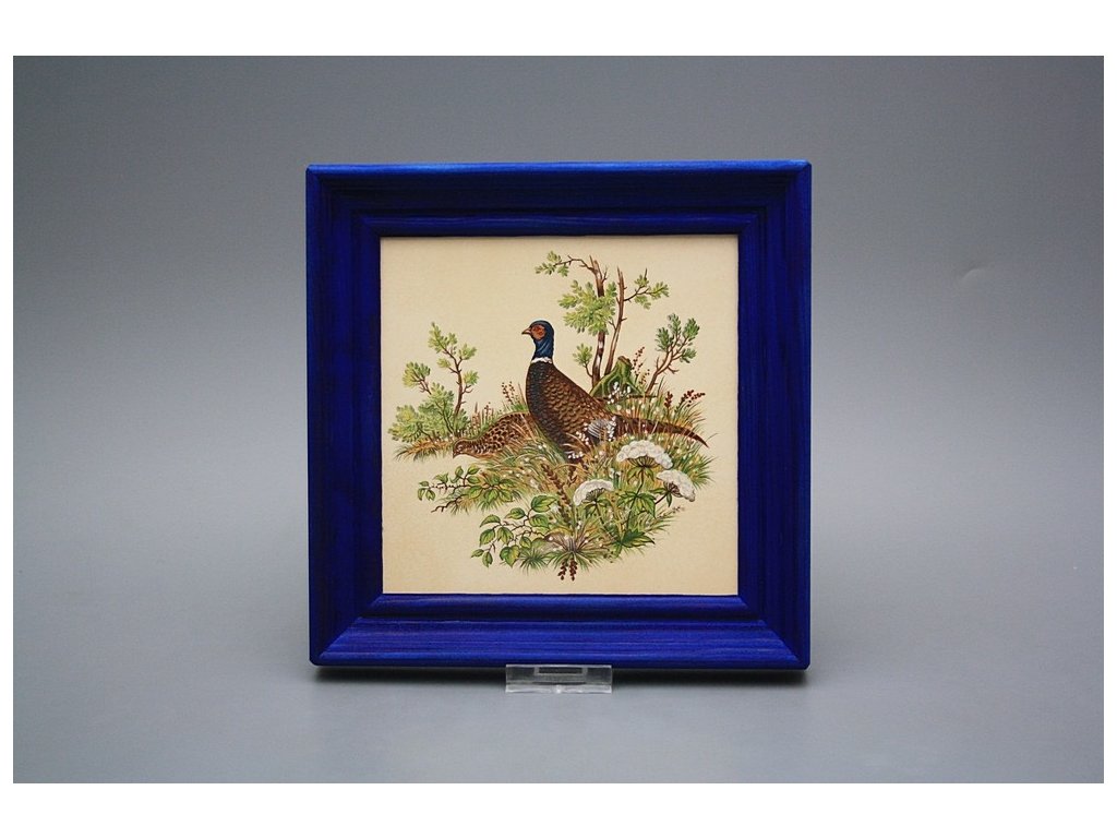 Keramisches Bild zum Aufhängen mit Holzrahmen, Temperatur beim Ausbrennen des Motivs in Höhe von 820°C, abriebfestes, waschbares Dekor.