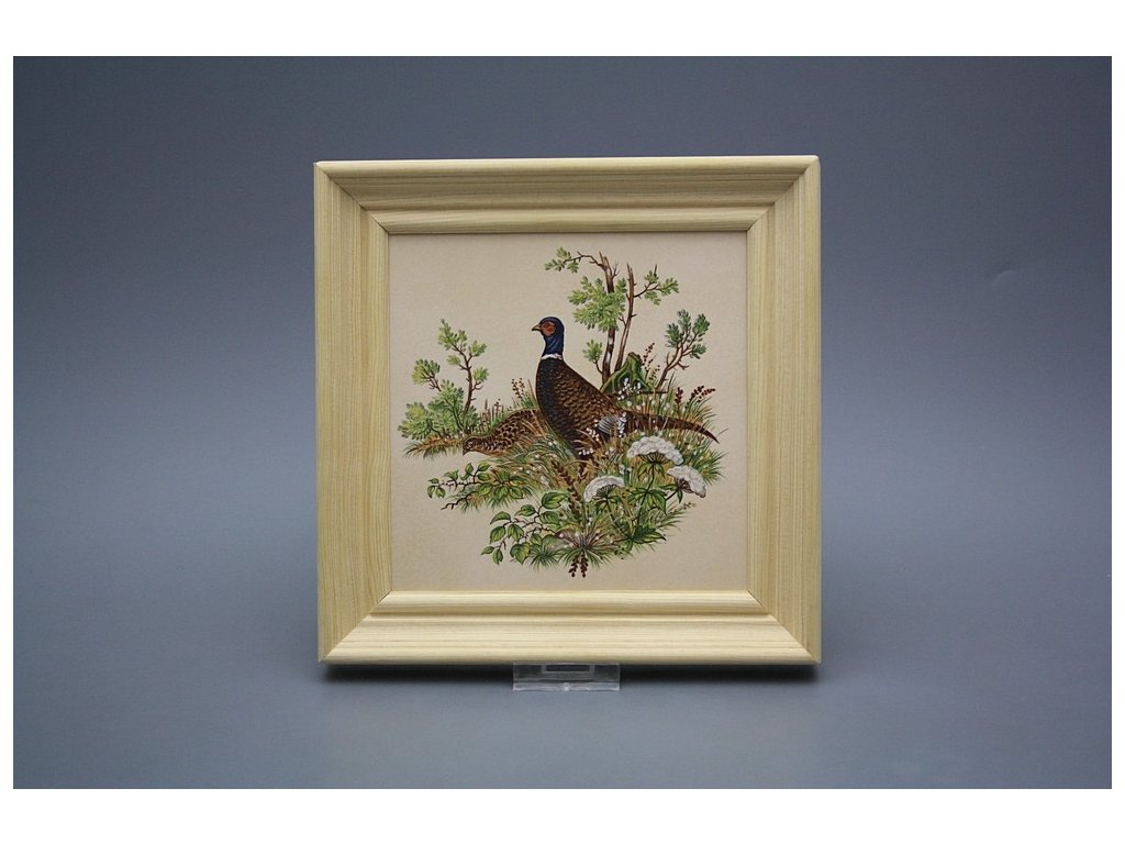 Keramisches Bild zum Aufhängen mit Holzrahmen, Temperatur beim Ausbrennen des Motivs in Höhe von 820°C, abriebfestes, waschbares Dekor.